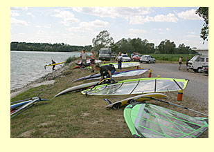 Surfen in Lauterbourg Optimale Bedingungen: Windrichtung SW Board ab 120 l Segel ab 7 qm Eintritt und Versicherung ca. 15 € pro Tag